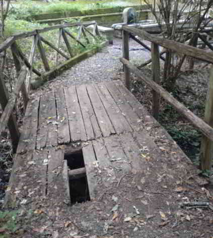 [ VOM UMGANG MIT NATURGEFAHREN ]Beispiel: ein mehrere Meter tiefes Loch im Wald (Eingang zu einem Lavatunnel), unmittelbar an einem Wander- und Fahrradweg.